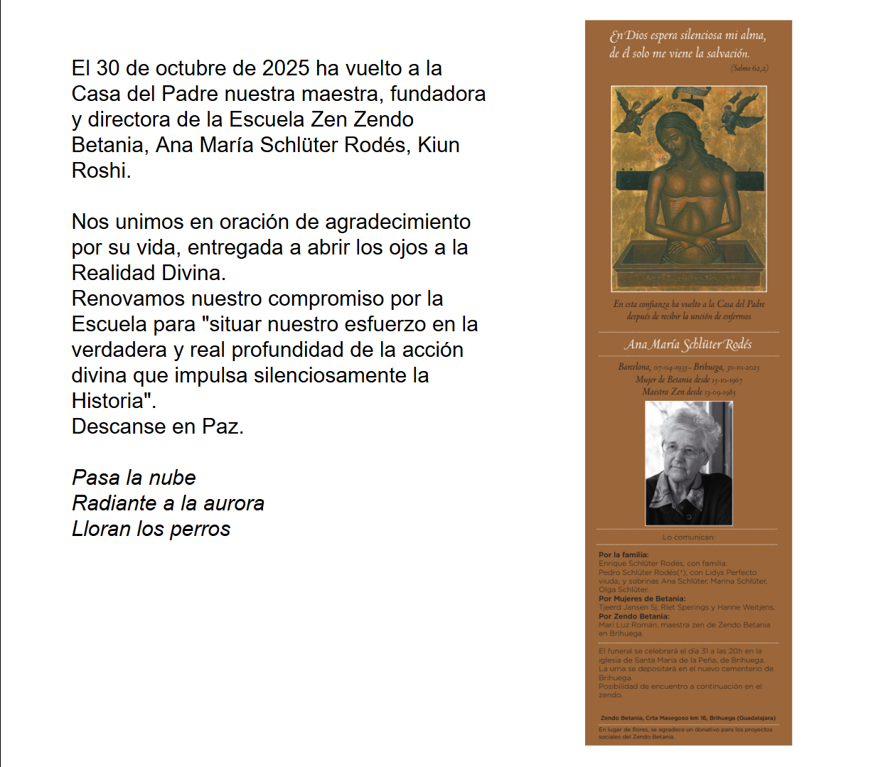 en la Escuela Zen Zendo Betania durante el año 2026, tanto en Brihuega como en el resto de lugares. También aquí tienes el